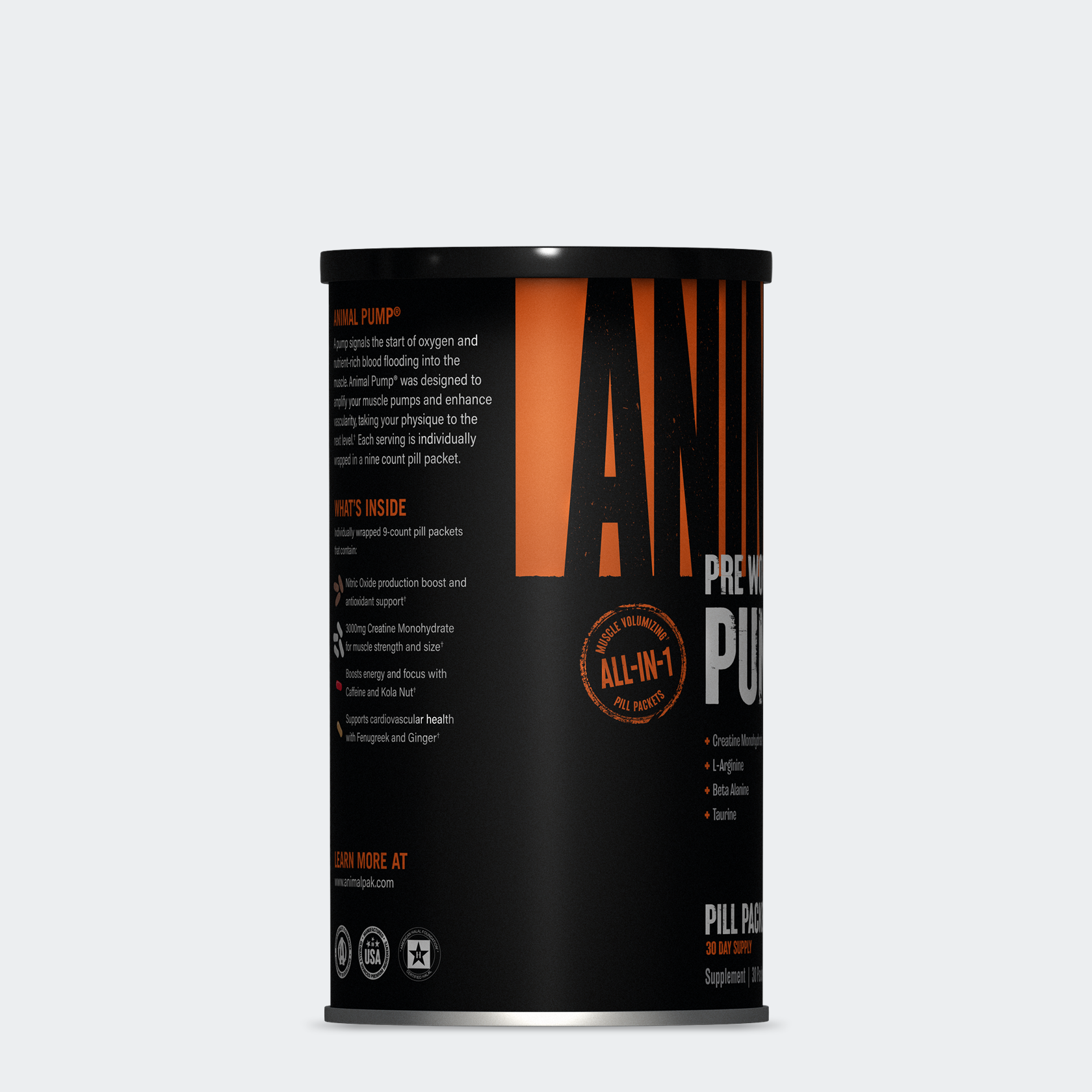 Animal Pump was the first encapsulated pre-workout formula that contained a full daily dose of advanced creatines in each pre-dosed pack, fortified by vasodilation ingredients intended to maximize the pump by boosting nitric oxide (NO) production.